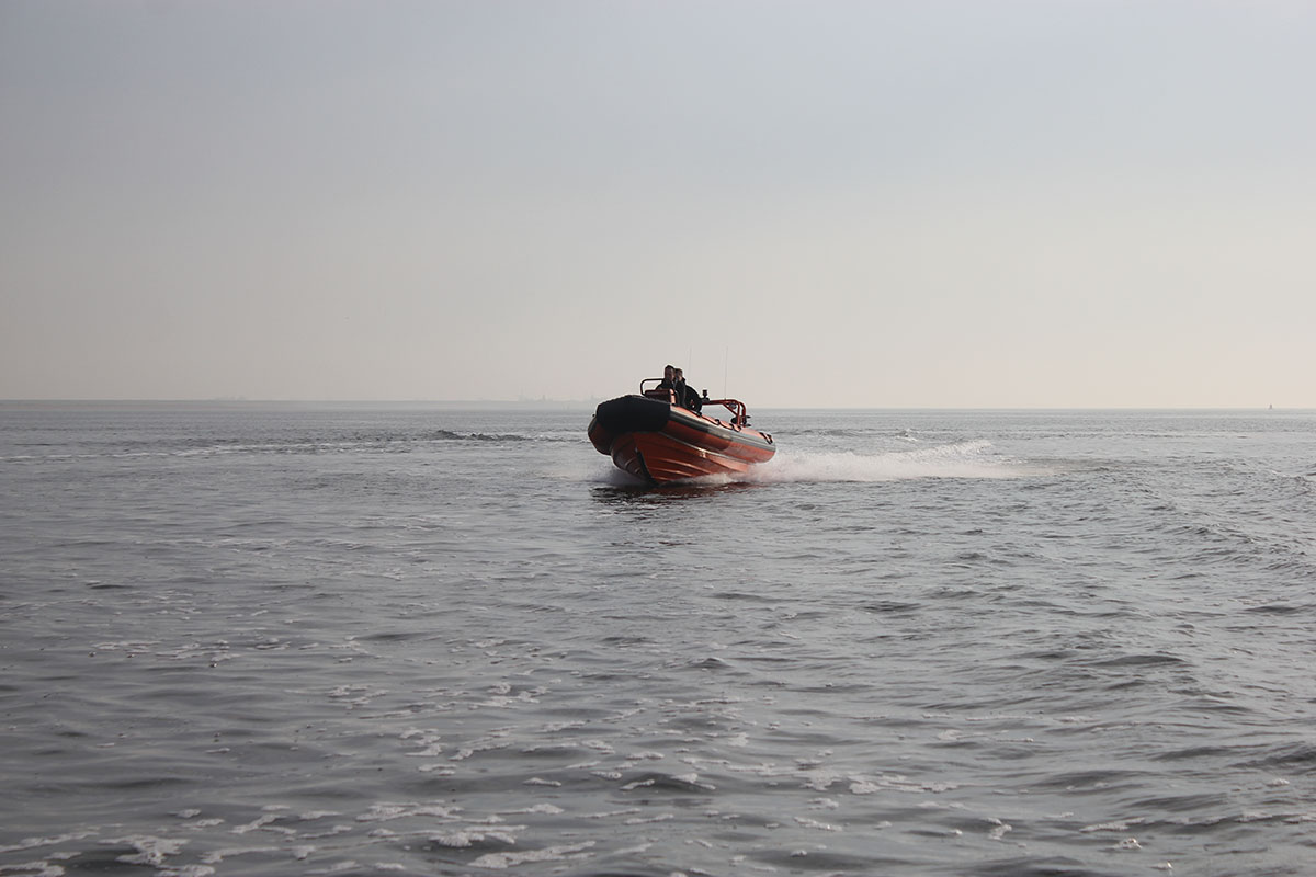 De volledig planerende diepe V-romp, voorzien van sprayrails en een 40° reverse chine, garandeert een droge en stabiele vaart onder alle omstandigheden. De romp van brandvertragend polyester vormt met het zelflozende dek één onverwoestbare eenheid. De boot wordt beschermd door ORCA Neoprene-Hypalon drijvers met vijf onafhankelijke luchtkamers voor maximale betrouwbaarheid en weerstand tegen chemicaliën, uv en slijtage. Ontworpen voor een bemanning van 4 en een totale capaciteit tot 12 personen, biedt de lay-out volledig situationeel bewustzijn. De achtergelegen console geeft de schipper maximaal overzicht, terwijl de 150 pk buitenboordmotor zorgt voor snelheden tot 30 knopen.
